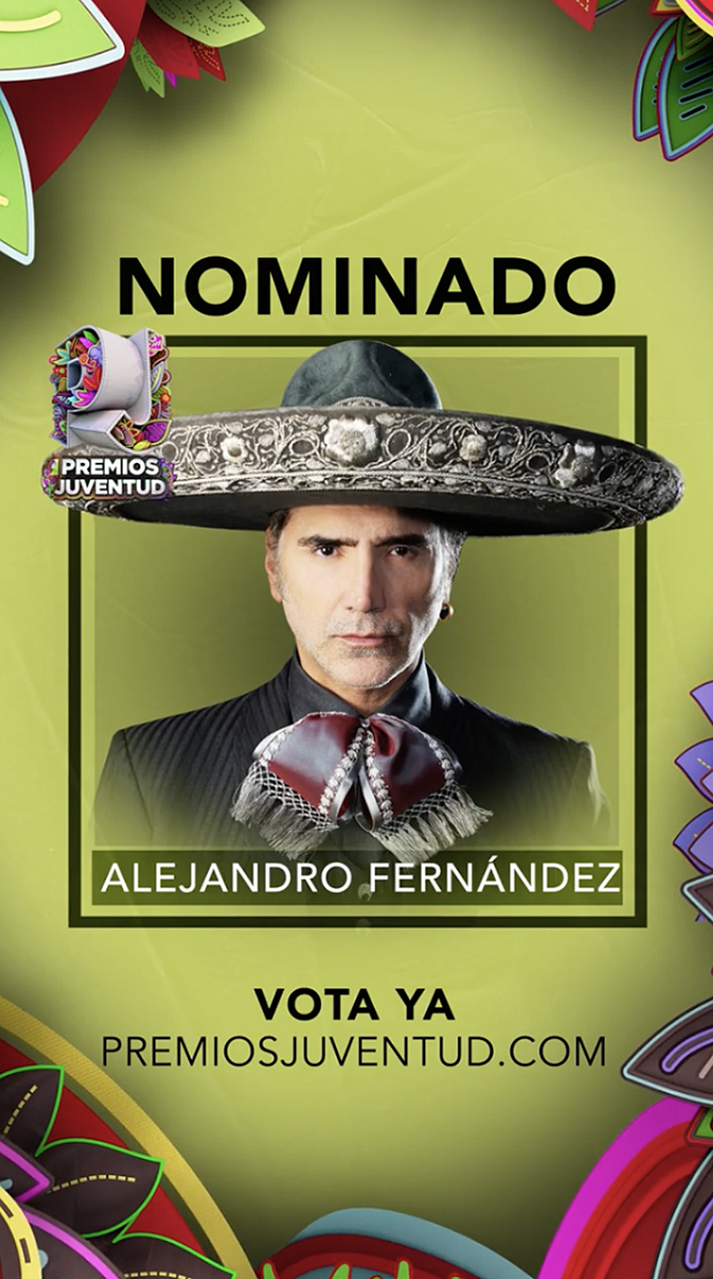 Alejandro Fernández recibe nominación a “MEJOR CANCIÓN MARIACHI / MÚSICA MEXICANA” en Premios Juventud 2025
