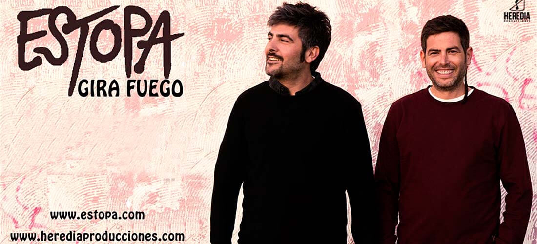 Estopa celebra su 20ª Aniversario por todos los escenarios españoles sustentado en el álbum homónimo “Fuego”, así como en sus grandes éxitos de siempre. Los Hermanos Muñoz han creado un gran espectáculo que ha cosechado grandes críticas, entradas agotadas en casi todas las ciudades y, sobre todo, unir a fans de nuevas generaciones con los que les vieron debutar en 1.999 y hacer que canciones como “La raja de tu falda” se hayan convertido en himnos generacionales.