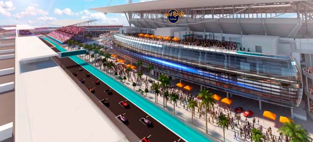 Como parte del acuerdo anunciado es que el estadio Hard Rock será el escenario de la competencia automovilística y la carrera se realizará en los terrenos de este inmueble