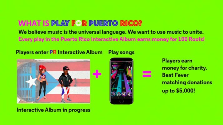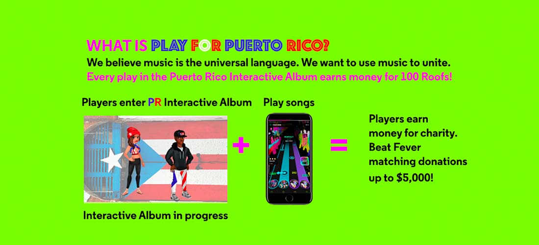 Beat Fever, una aplicación de música móvil con más de 9.1 millones de fanáticos de la música, está lanzando la campaña benéfica «Play for Puerto Rico» para impulsar las donaciones a 100Roofs.org, y ayudar a la recuperación de Puerto Rico. Los esfuerzos son para recaudar $500,000 para reconstruir 100 techos antes de fin de este año.