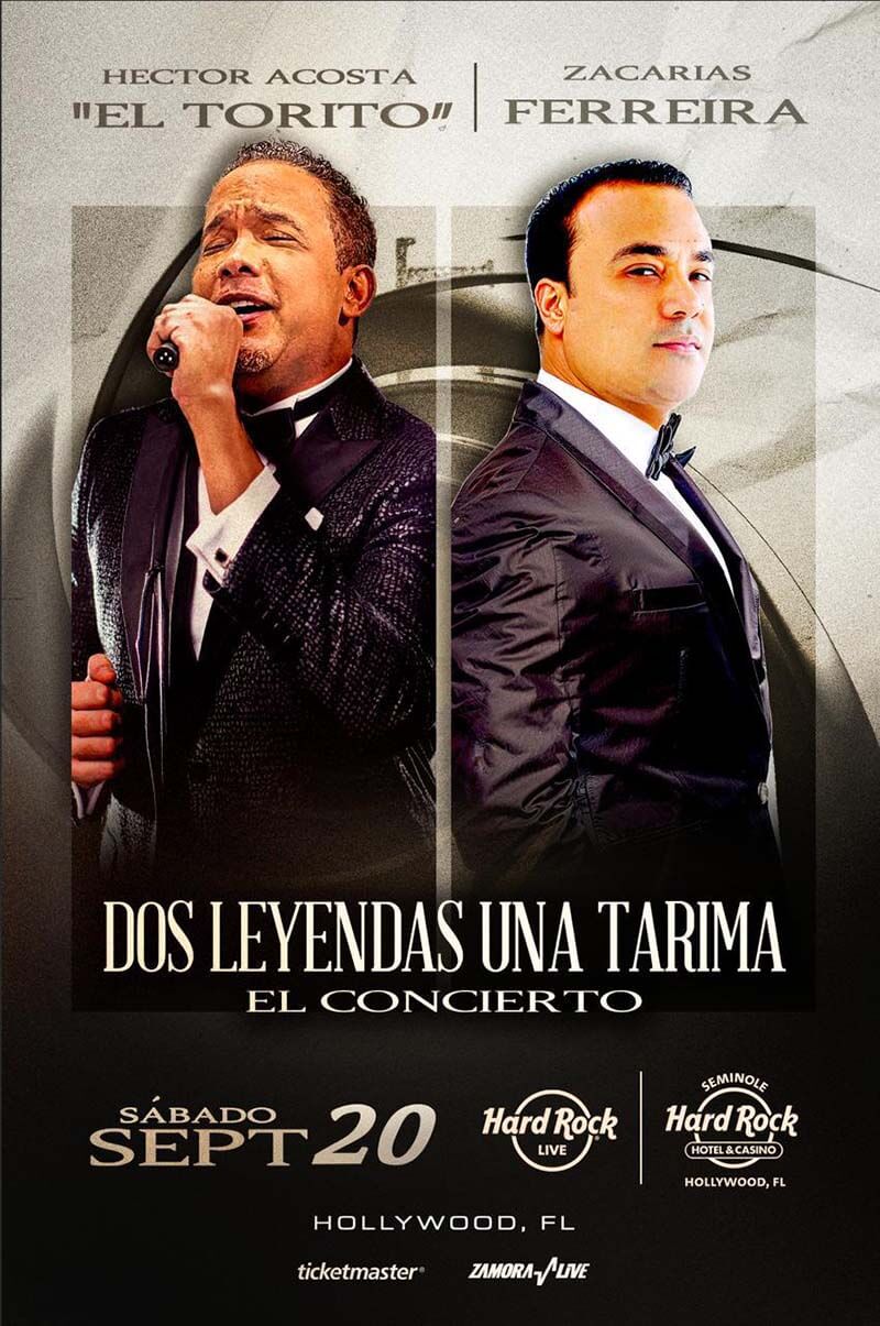 Dos de las voces más grandes de la música dominicana unen fuerzas en un evento único: “Dos Leyendas Una Tarima”, el esperado concierto que reunirá a Héctor Acosta “El Torito” y Zacarías Ferreira el próximo sábado 20 de septiembre en el Hard Rock Live de Hollywood, Florida, bajo la producción de Zamora Live.