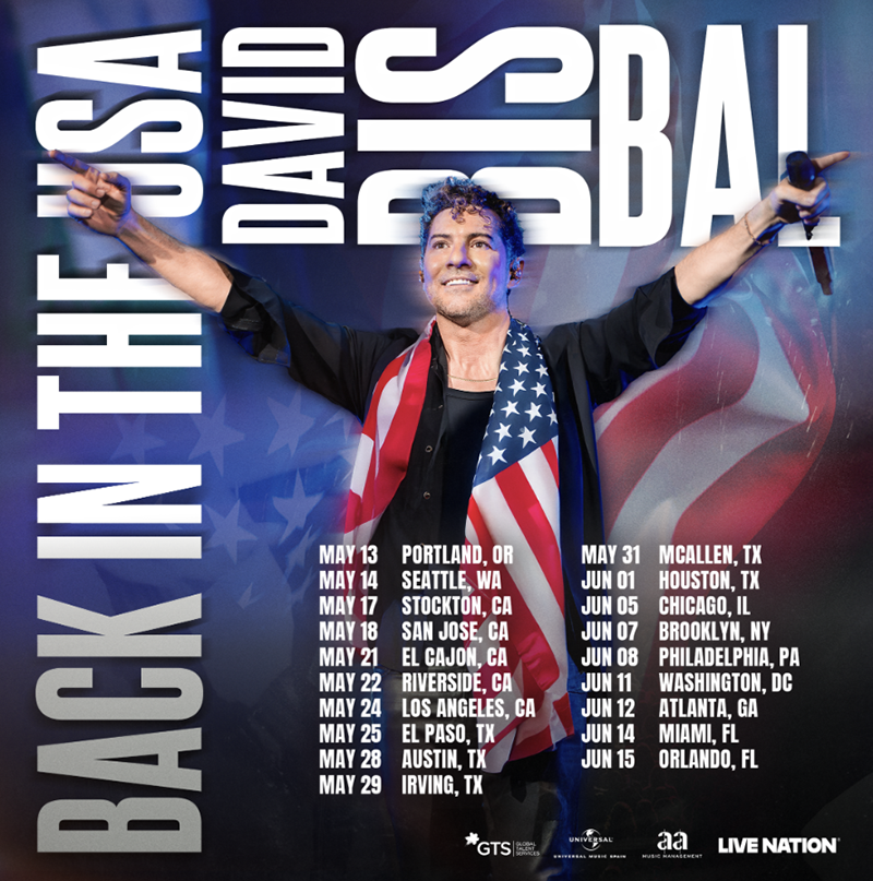 Después de un 2024 lleno de éxitos en su carrera, premios y presentaciones con entradas totalmente agotadas en todo el mundo, el ícono español David Bisbal regresa a Estados Unidos con su primera gira desde el 2021 con el muy esperado ‘Back in the USA 2025 Tour’. Esta emocionante gira promete una experiencia inolvidable para los fans, con un repertorio renovado que incluye sus más grandes éxitos, así como las últimas canciones de su célebre discografía.