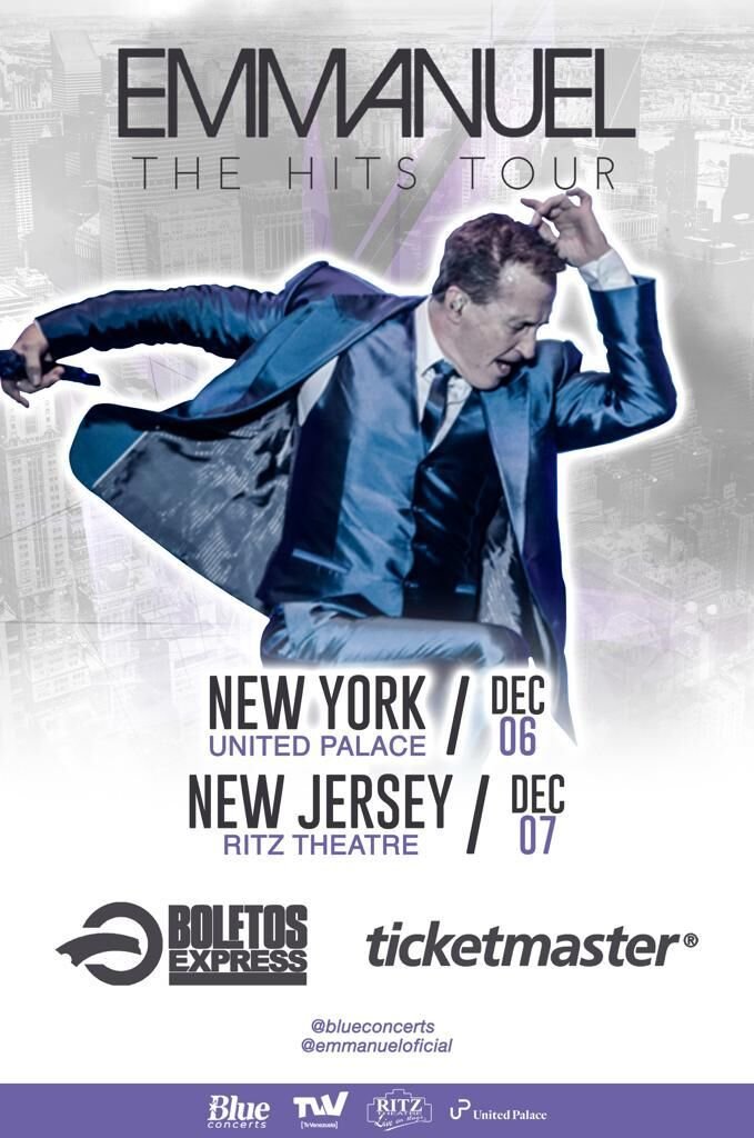 Emmanuel, artista considerado por muchos como el «Rey del Pop Latino», regresa a New York y New Jersey los días 6 y 7 de Diciembre con su show «THE HITS TOUR», donde tendrá como siempre un amplio despliegue de producción y alto nivel artístico. El mexicano se reencontrará con New York y New Jersey luego de varios años de ausencia de los escenarios de estos lares donde es seguido por miles y miles de fanáticos.