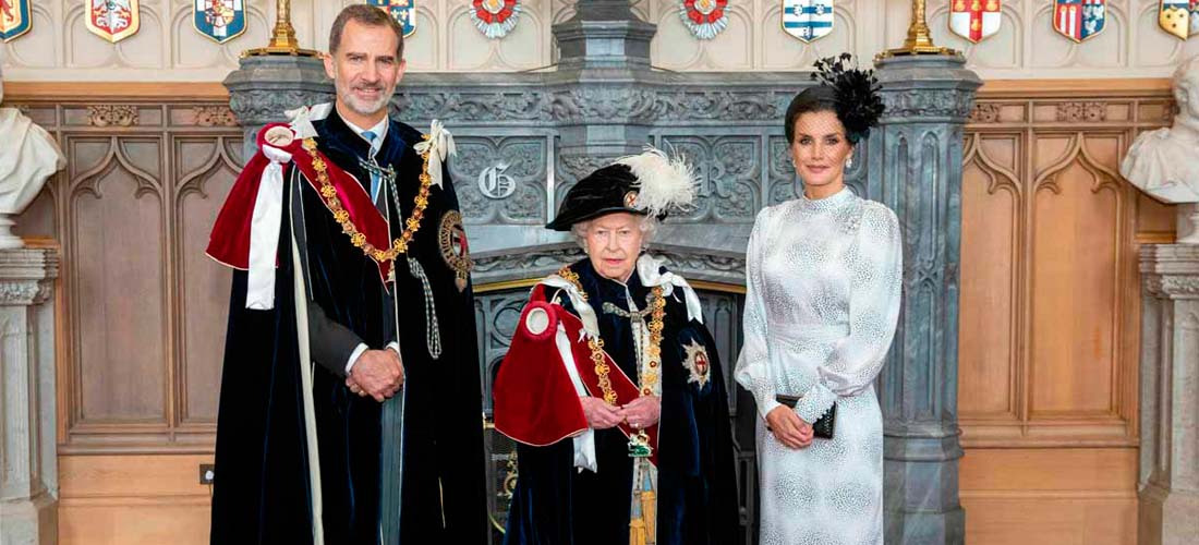 Dos años después de que Isabel II le concediera la distinción, don Felipe, acompañado de la reina Letizia, se ha vestido con la típica capa de terciopelo azul, el sombrero negro con plumas de avestruz y el collar con el símbolo de la liga que caracteriza a los integrantes de la más antigua orden de caballería británica.