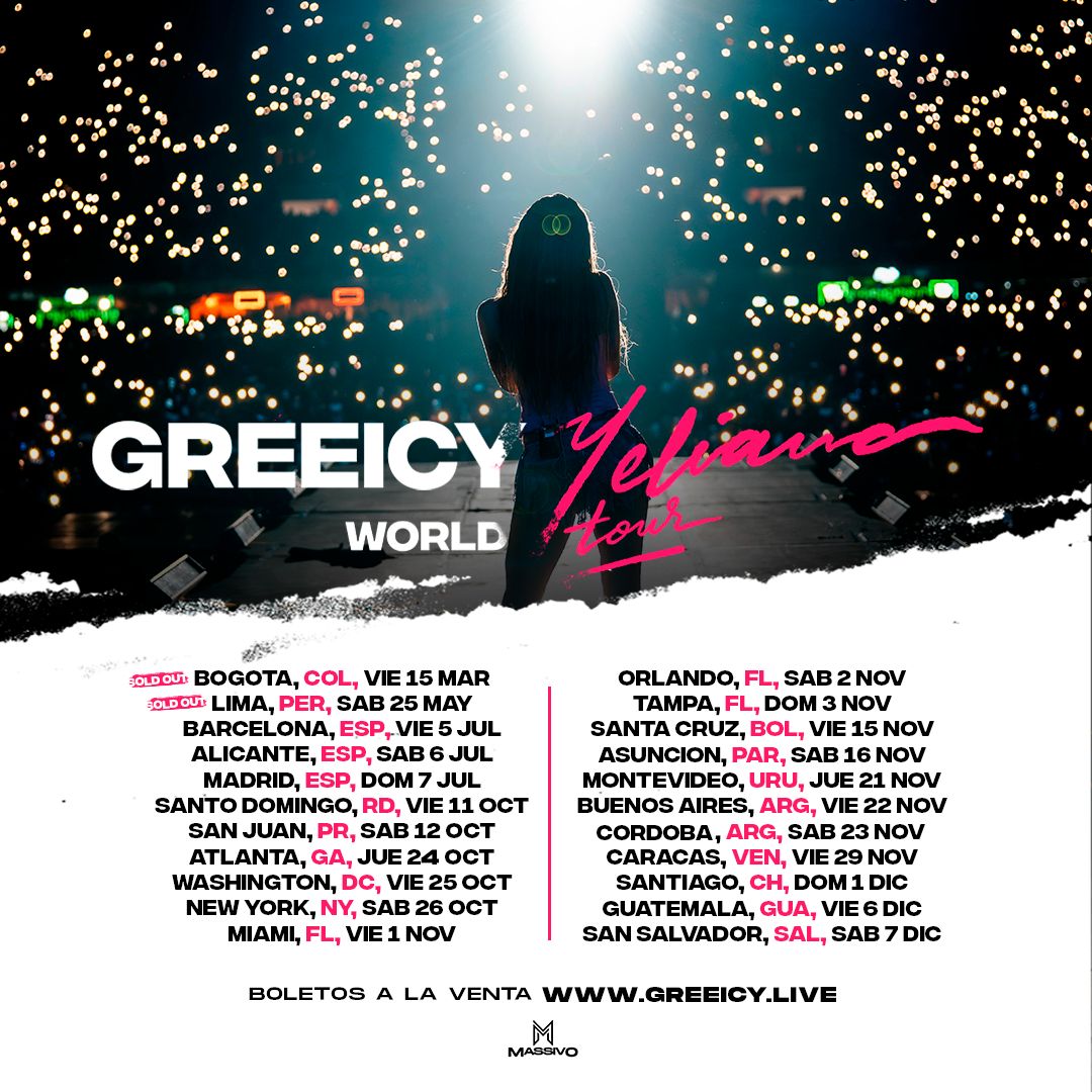 Actualmente la cantante se encuentra realizando su gira Greeicy-Yeliana World Tour que ha sido un rotundo éxito en cada ciudad que ha visitado. Este tour celebra la dualidad artística de Greeicy y su alter ego Yeliana.