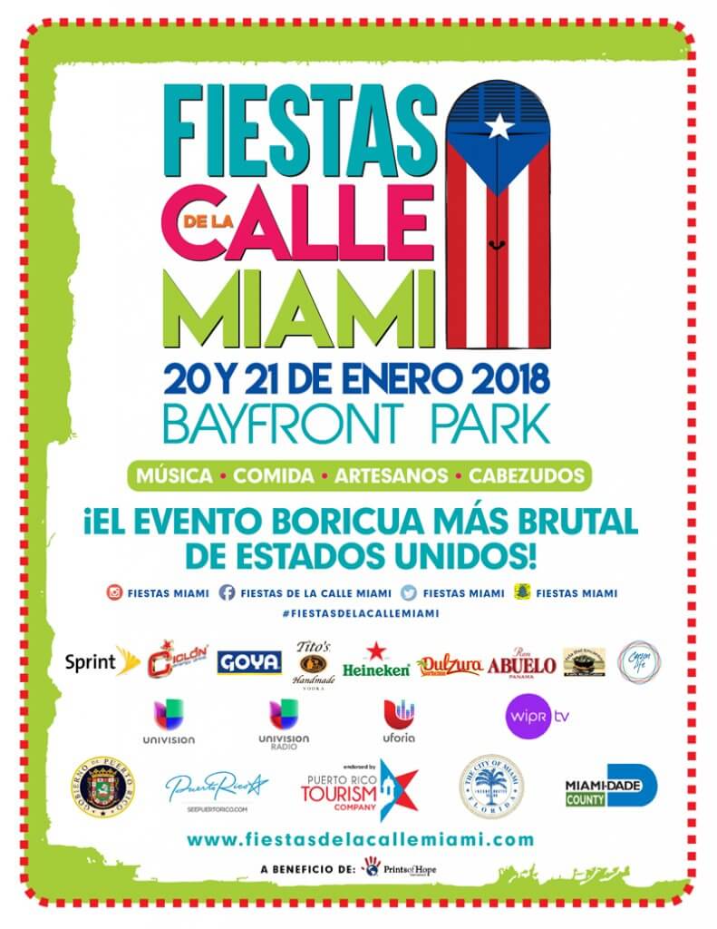 Las «Fiestas de la Calle Miami» serán dos días de pura diversión familiar. Cuentan con el apoyo del Gobierno de Puerto Rico, la Compañía de Turismo, el Instituto de Cultura Puertorriqueña, WIPR TV, la Cadena Univision, Univision Radio, Uforia y el Gobierno de la Ciudad de Miami.