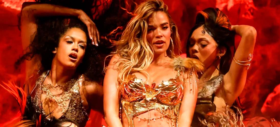 Karol G rindió homenaje a la cultura latina con su puesta en escena. La artista hizo un repaso por los éxitos más destacados de su carrera durante los 90 minutos que duró el show. La artista colombiana ofreció un ambicioso show que combinó una imponente coreografía, juegos de luces, cambios de vestuario y varios artistas invitados.