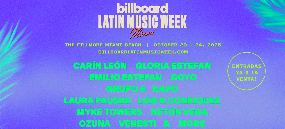 Billboard Latin Music Week, la principal celebración de la música latina, se llevará a cabo del lunes 20 al viernes 24 de octubre de 2025 en el histórico Fillmore Miami Beach.