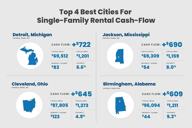 Top 4 best cities for real estate rental cash flow