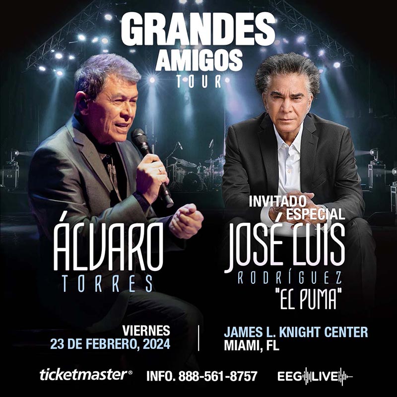 «GRANDES AMIGOS TOUR» DE ÁLVARO TORRES” Y JOSE LUIS RODRIGUEZ “EL PUMA” COMO INVITADO DE LUJO LLEGAN A MIAMI ESTE VIERNES 23 DE FEBRERO EN JAMES L KNIGHT CENTER.