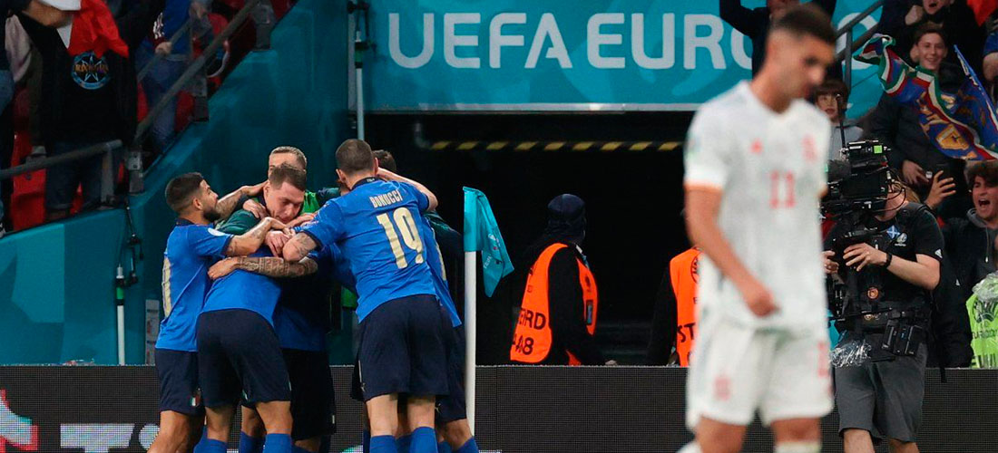 En la puerta del paraíso se quedó España. Justo en el umbral después de llevar a Italia al límite, firmando un imponente partido, dominando el juego, controlando casi todo, teniendo respuesta para superar el tanto inicial de Chiesa. Es una derrota con honor. Pero una derrota. Aunque, en el fondo, tal vez sea un triunfo porque Luis Enrique ha sabido guiar a esta joven selección hasta Wembley sembrando una semilla de esperanza. Hay futuro. Y, por supuesto, presente como quedó demostrado con un equipo que tuvo el balón, desfigurando a Italia, que se coló en la final de la Eurocopa en la tanda de penaltis.