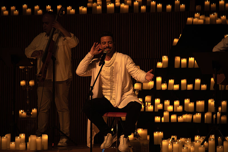Mane se mostró muy entregado a su público en todo momento, bailó e interactuó con todos los asistentes que estaban disfrutando de un momento íntimo y muy agradable en el recinto, iluminado por las velas.