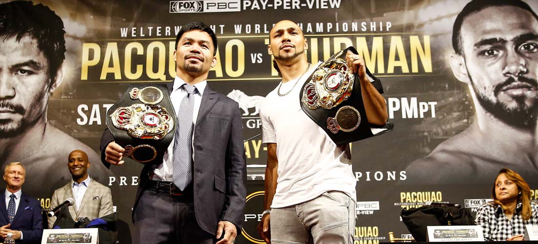 Manny «Pac Man» Pacquiao, único boxeador del mundo campeón en ocho divisiones, senador filipino y frecuente campeón de peso wélter de la WBA, regresa para enfrentar al supercampeón invicto de peso de la WBA Keith «One Time» Thurman en un impresionante duelo de 66,5 kilos que se transmitirá en vivo el sábado 20 de julio desde el MGM Grand Garden Arena de Las Vegas. Con su velocidad, su potencia y sus tremendas destrezas, Thurman representa al retador más peligroso que Pacquiao, futuro miembro del Salón de la Fama, haya enfrentado en sus últimos combates. Sin duda, esta álgida pelea dejará al ganador muy cerca de la cima de una de las divisiones más interesantes y llenas de talento del boxeo.