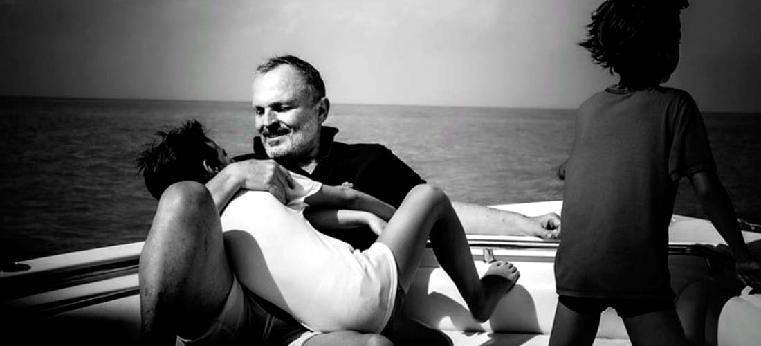 En las imágenes en blanco y negro se ve al intérprete de «Amante Bandido» sentado en una embarcación junto a dos de sus cuatro hijos. Todos portan short y camiseta.