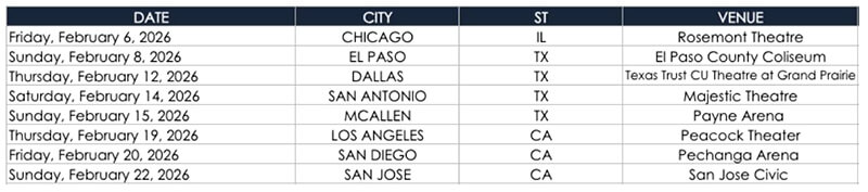 Después de más de 150 presentaciones y tres años compartiendo escenario, el poderoso ensamble regresa a Estados Unidos en 2026 con una producción completamente renovada, bajo la dirección de Loud And Live.