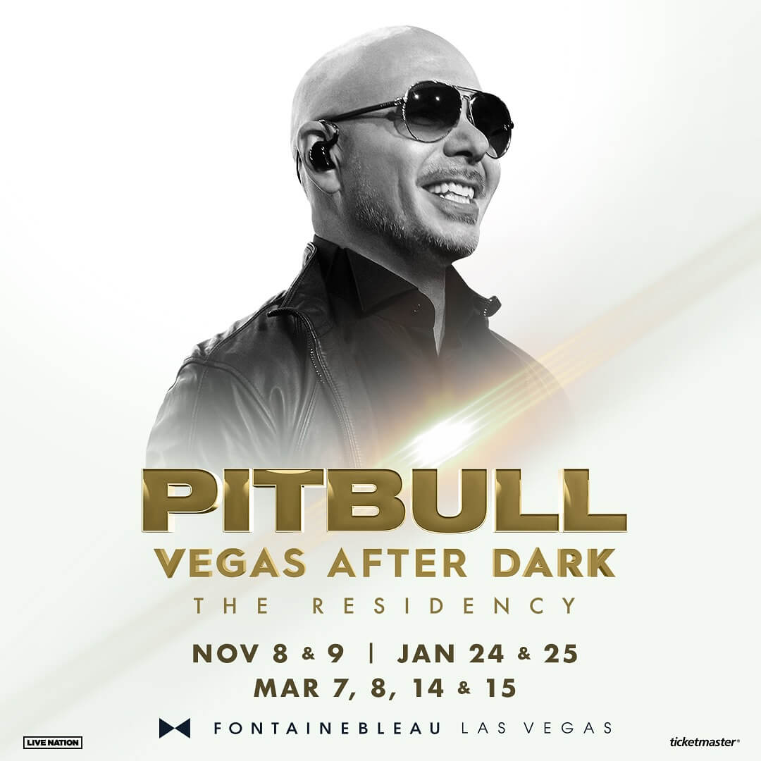 Las fechas para Pitbull: Las Vegas After Dark The Residency se establecen para el 8 al 9 de noviembre; 24-25 de enero de 2025; y 7, 8, 14 y 15 de marzo, 2025.