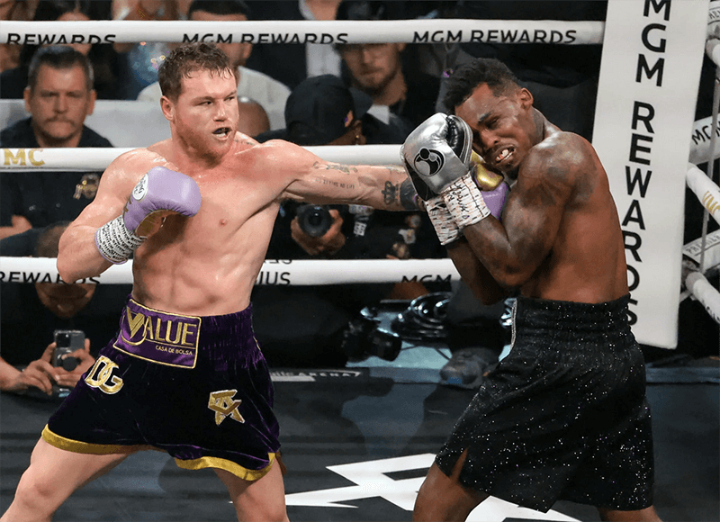 Canelo Alvarez golpeando a Jermell Charlo /Getty Images