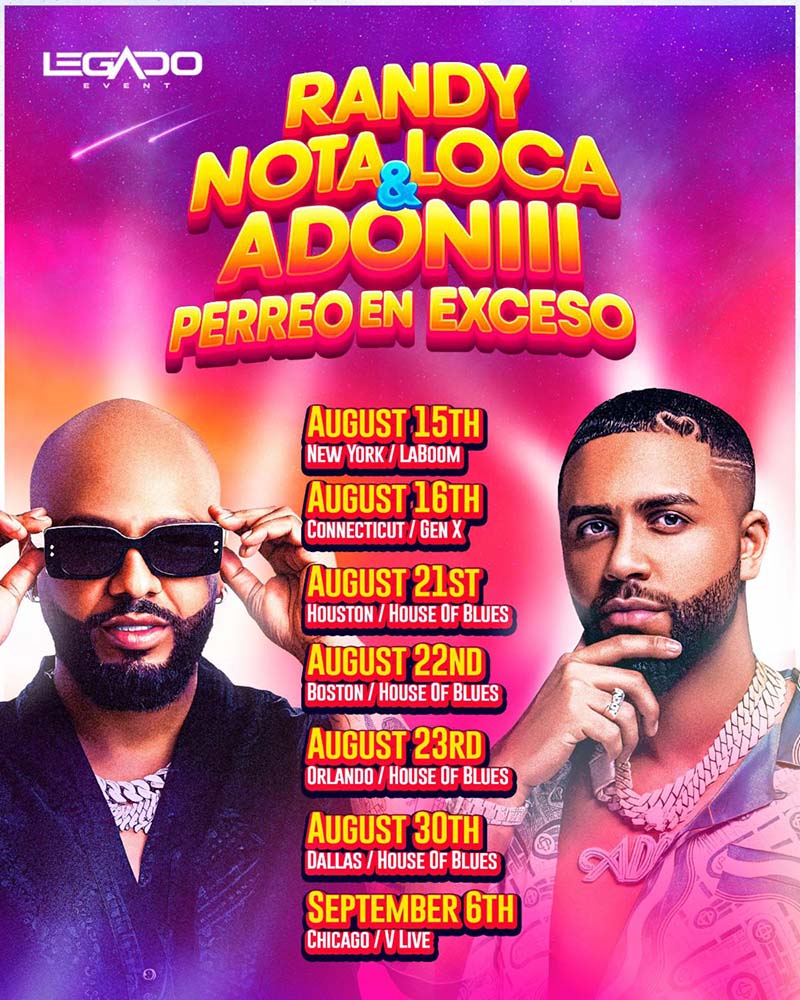 Las potencias del género urbano Randy Nota Loca y DJ Adoniii se unen por primera vez para la gira “Perreo en Exceso”, presentada por Legado Event. Este espectáculo promete encender los escenarios más icónicos de Estados Unidos con reggaetón sin pausa, energía desbordante y conexión directa con el público.