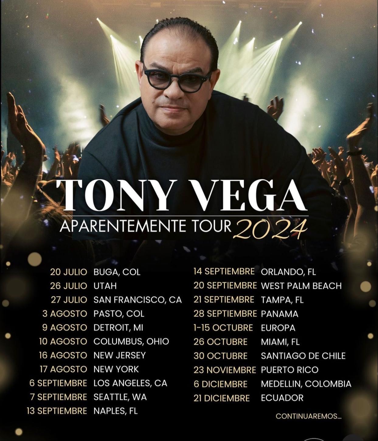 En medio de su gira internacional, Tony Vega inicia este mes con sus esperadas presentaciones en Estados Unidos. Comienza su recorrido por el país el 9 de agosto en Detroit, seguido por Columbus el 10. Posteriormente, Tony se presentará en New Jersey el 16 de agosto y llegará al Clinton Hall Palace de New York el 17. Estas dos últimas fechas son algunas de las más anticipadas del tour en territorio norteamericano, donde promete deleitar a su público con su inigualable estilo y energía.