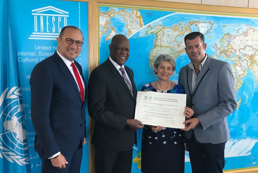 El acto de entrega, encabezado por Irina Bokova, directora general de la UNESCO, contó con la presencia del embajador dominicano ante ese organismo, José Antonio Rodríguez, quien se hizo acompañar de Johnny Ventura, uno de los máximos exponentes de la música característica de los dominicanos, además de Roger Zayas, miembro del afamado grupo 440.